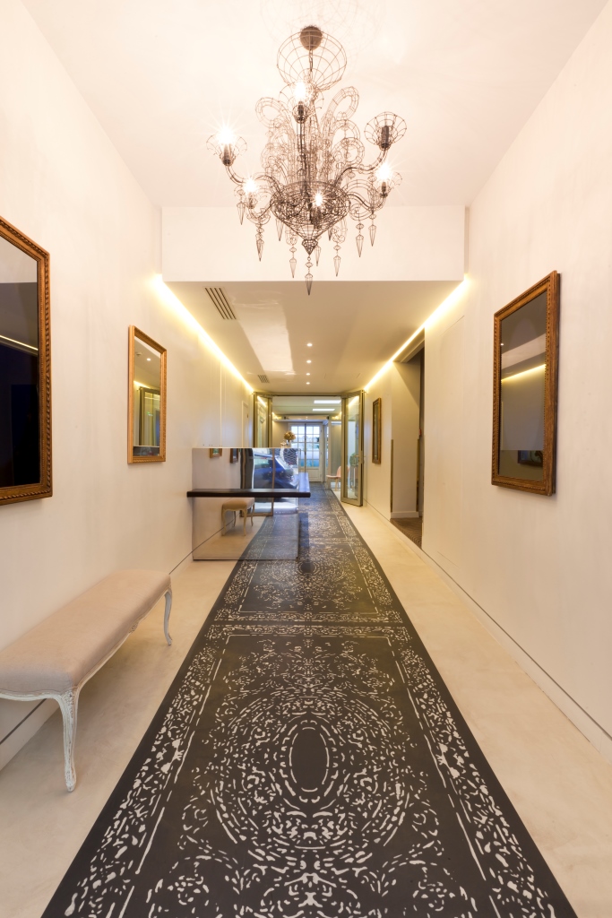 L’ambiance générée, la fois design et d’époque, est ressentie grâce à des volumes épurés mais ornementés d’empreintes d’ancien style représentant l’anachronisme du mélange des temps souhaités pour le traitement des espaces.