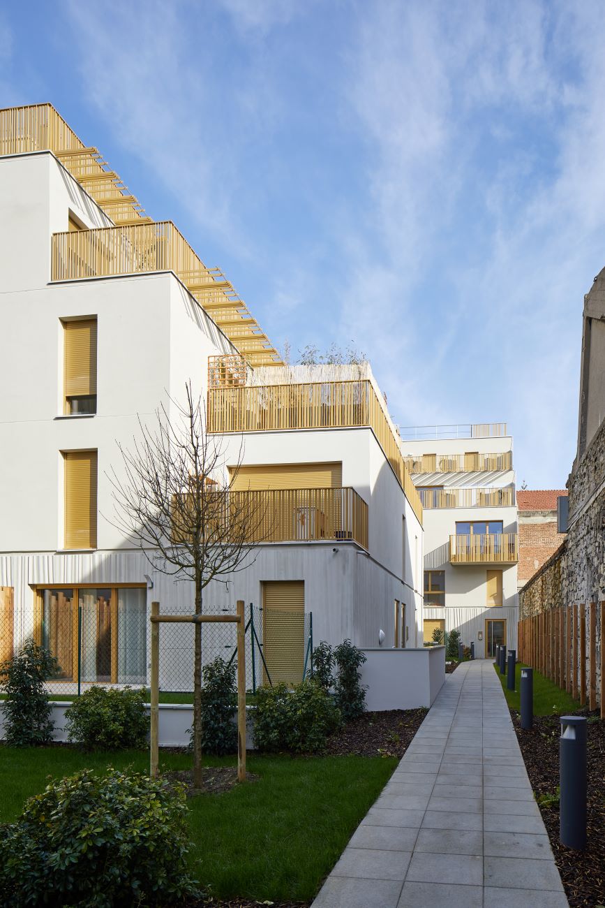 En fond de venelle, le dernier plot à R+4 se décompose en terrasses escalier orientées vers le sud