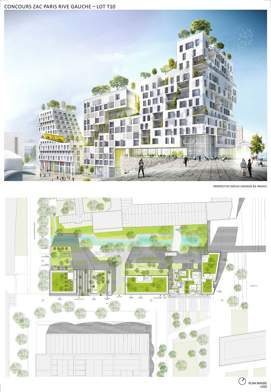 This site has two interpretations: The project sits at the intersection between urban routes, railways, an esplanade, and varied building densities, including low density (Halle Freyssinet), high density and framing buildings. Beyond these long reaching views, the façades will be viewed up close, through its use as a living space.