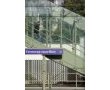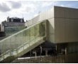 It is connected to the "banks" of the city and the platforms below by a walkway and stairs in a fine coated steel structure and lift shafts in a "skin" of attached glass.